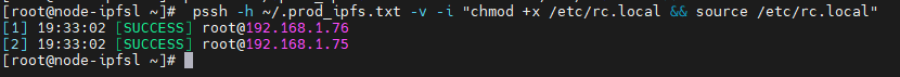 [root@node-ipfsl ~]# pssh -h ~/.prod_ipfs.txt -v -i "chmod +x /etc/rc.local && source /etc/rc.local"