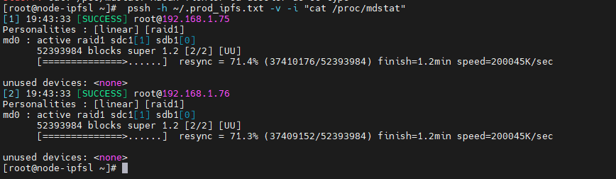 [root@node-ipfsl ~]# pssh -h ~/.prod_ipfs.txt -v -i "cat /proc/mdstat"