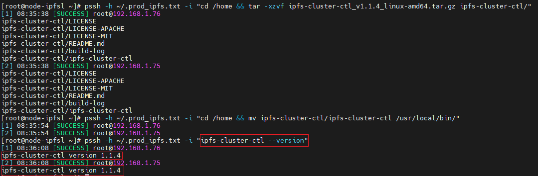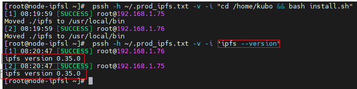 [root@node-ipfsl ~]# pssh -h ~/.prod_ipfs.txt -v -i "cd /home/kubo && bash install.sh"