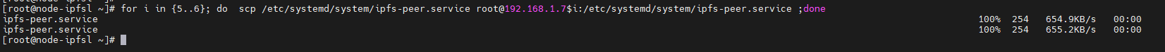 [root@node-ipfsl ~]# for i in {5..6}; do scp /etc/systemd/system/ipfs-peer.service root@192.168.1.7$i:/etc/systemd/system/ipfs-peer.service ;done