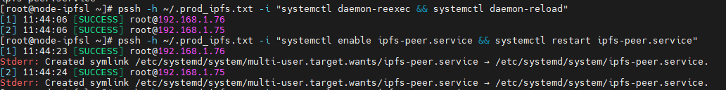 [root@node-ipfsl ~]# pssh -h ~/.prod_ipfs.txt -i "systemctl daemon-reexec && systemctl daemon-reload"