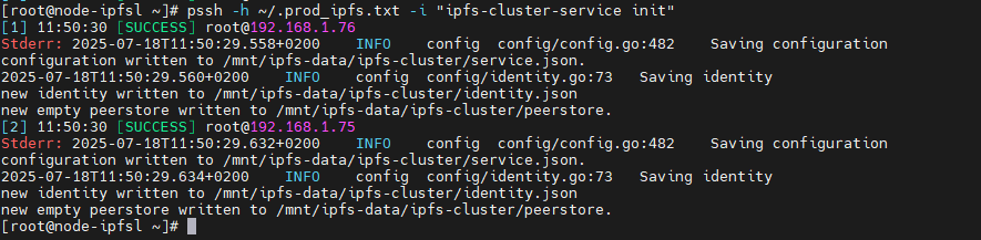 [root@node-ipfsl ~]# pssh -h ~/.prod_ipfs.txt -i "ipfs-cluster-service init"