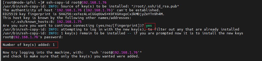 [root@node-ipfsl ~]# ssh-copy-id root@192.168.1.76