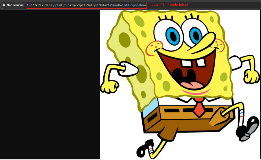 - Node-ipfsp5 : IP = 192.168.1.75 (peer)