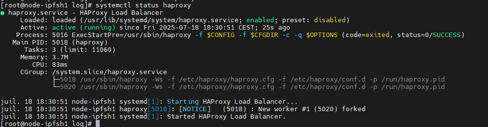 [root@node-ipfshx ~]# systemctl enable haproxy Created symlink /etc/systemd/system/multi-user.target.wants/haproxy.service → /usr/lib/systemd/system/haproxy.service.