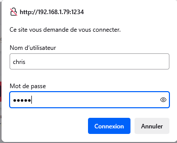 Crédenciales définis dans le fichier de configuration HAproxy (stats auth chris:Chris)