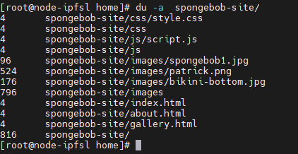 [root@node-ipfsl home]# mkdir -p spongebob-site/{css,js,images}