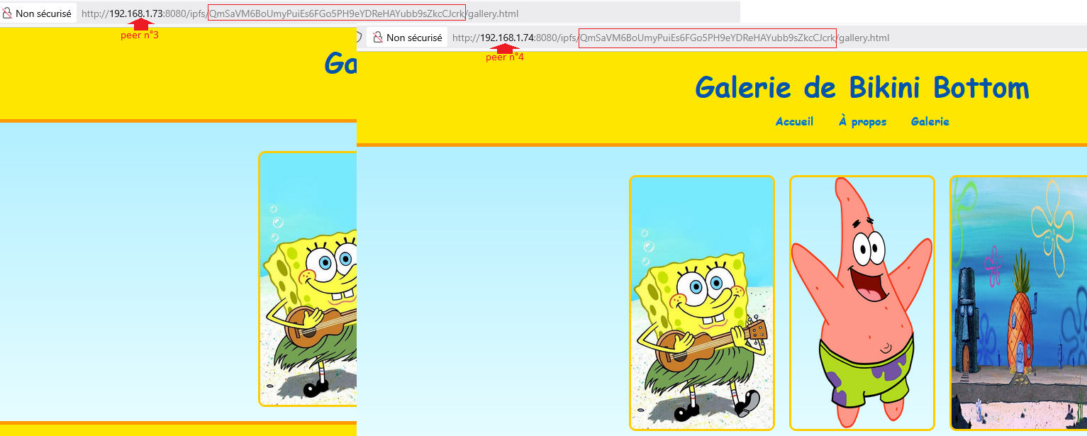 Check d’accès au site Spongebob répliqué sur les 6 peers et leader