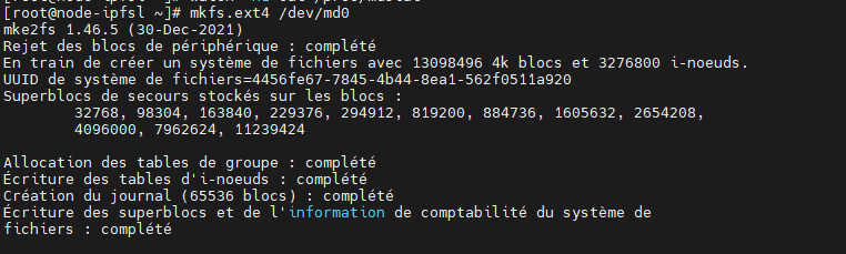[root@node-ipfsx ~]# mkfs.ext4 /dev/md0