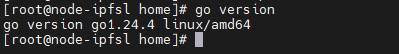 [root@node-ipfsx ~]# cd /home [root@node-ipfsx home]# wget https://go.dev/dl/go1.24.4.linux-amd64.tar.gz [root@node-ipfsx home]# tar -xvf go1.24.4.linux-amd64.tar.gz [root@node-ipfsx home]# mv go /usr/local [root@node-ipfsx home]# mkdir $HOME/gopath [root@node-ipfsx home]# vi $HOME/.bashrc #export PATH export GOROOT=/usr/local/go export GOPATH=$HOME/gopath export PATH=$PATH:$GOROOT/bin:$GOPATH/bin