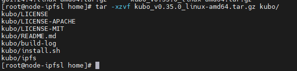 [root@node-ipfsx ~]# cd /home [root@node-ipfsx home]# wget https://dist.ipfs.tech/kubo/v0.35.0/kubo_v0.35.0_linux-amd64.tar.gz [root@node-ipfsx home]# tar -xzvf kubo_v0.35.0_linux-amd64.tar.gz kubo/