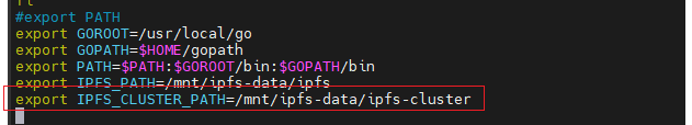 [root@node-ipfsx home]# export IPFS_CLUSTER_PATH=/mnt/ipfs-data/ipfs-cluster [root@node-ipfsx home]# vi $HOME/.bashrc