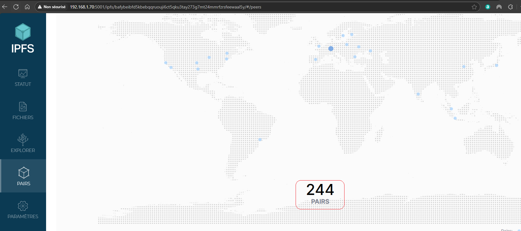 - Node-ipfsp1 : IP = 192.168.1.71 (peer n°1)