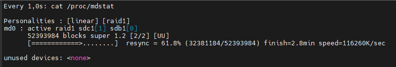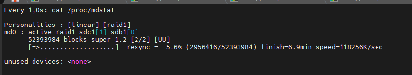 [root@node-ipfsx ~]# watch -n1 cat /proc/mdstat
